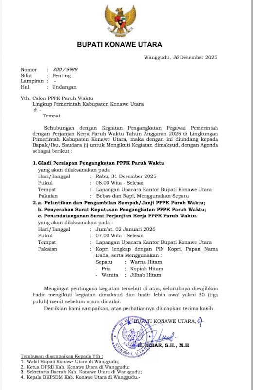 Indosultra.Com, Konawe Utara – Sebanyak 1.776 Pegawai Pemerintah Dengan Perjanjian Kerja (P3K) lingkup Pemerintah Kabupaten Konawe Utara (Konut), segera Dilantik.