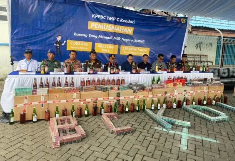 Kepala KPPBC TMP C Kendari, Tonny Riduan P. Simorangkir menyampaikan, bahwa pihaknya memusnahkan 2 juta batang rokok tanpa pita cukai dan 487 liter minuman beralkohol yang juga tidak dilengkapi pita cukai