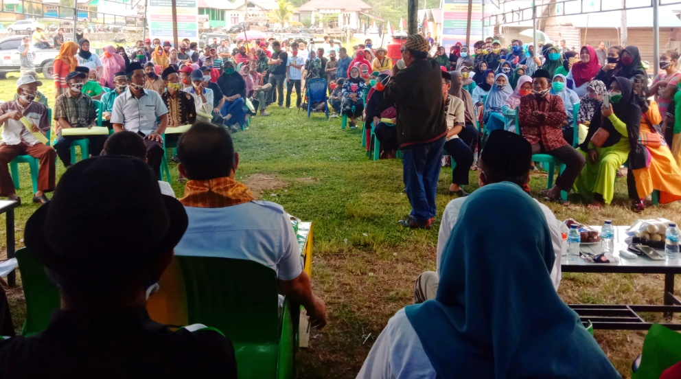 Ketgam: Ketua DPD ll Partai Golkar Konut, Safri saat menyampaikan orasi politiknya dalam acara kampanye terbatas Desa Andeo, Belalo, Abola, Tokowuta, Matapila, Tetelupai Kecamatan Lasolo.