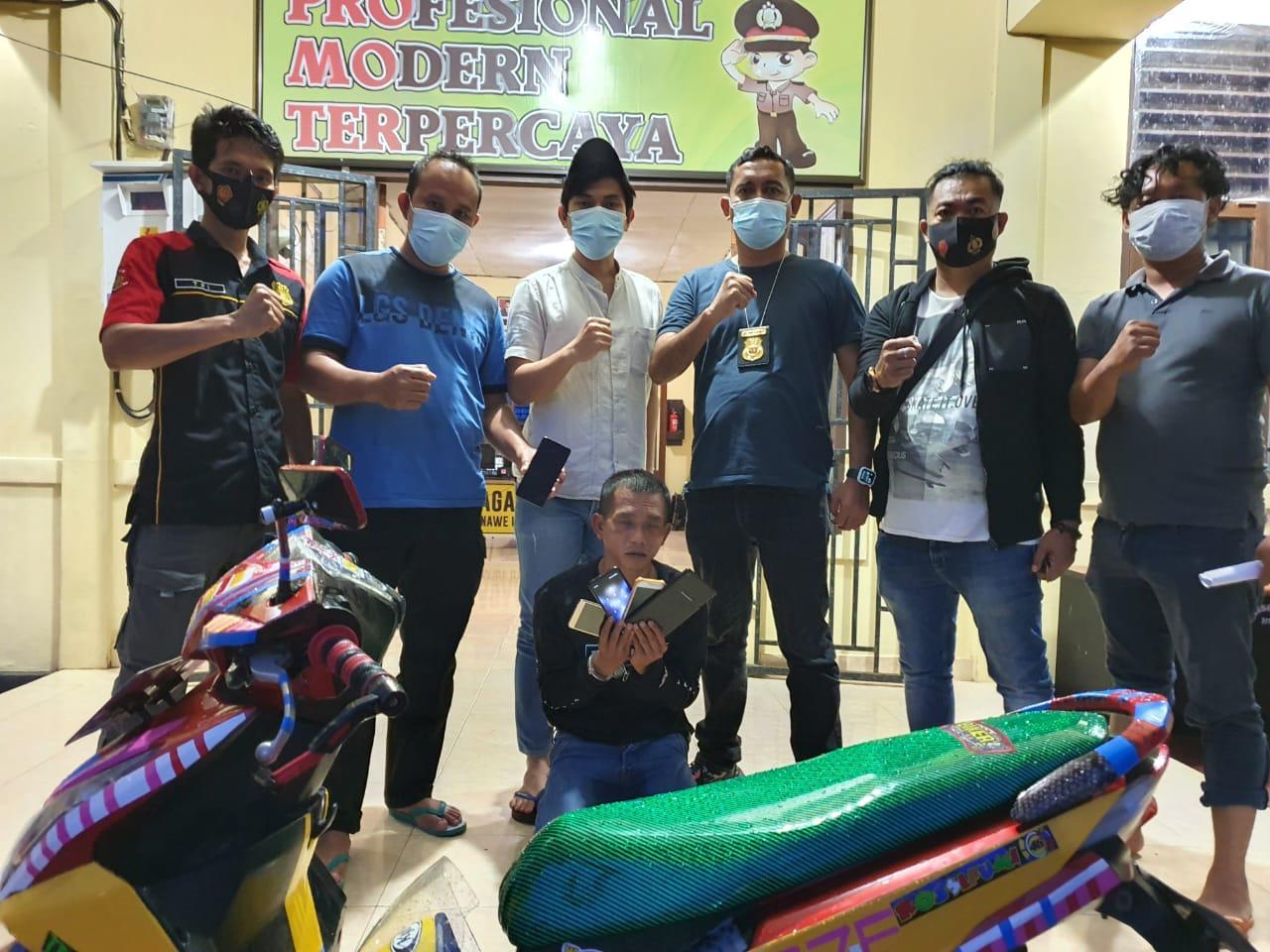 Diamenambahkan, timnya juga berhasil mengamankan barang bukti yang dicuri kedua pelaku yaitu, 5 unit handphone berbagai merk dan 1 unit sepeda motor merek yamaha mio.