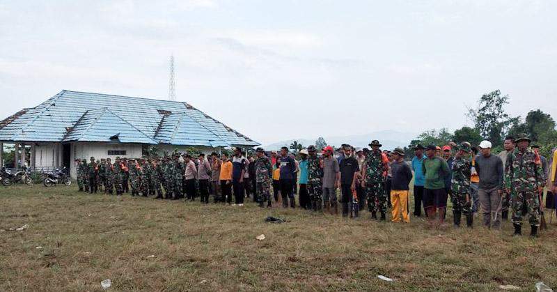 Ditempat kegiatan, terlihat seluruh tim baik dari Pemerintah, TNI, Polri dan masyarakat secara bersama-sama bahu-membahu laksanakan kerja bakti.