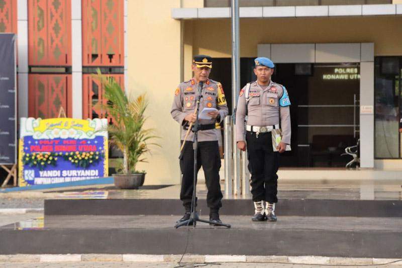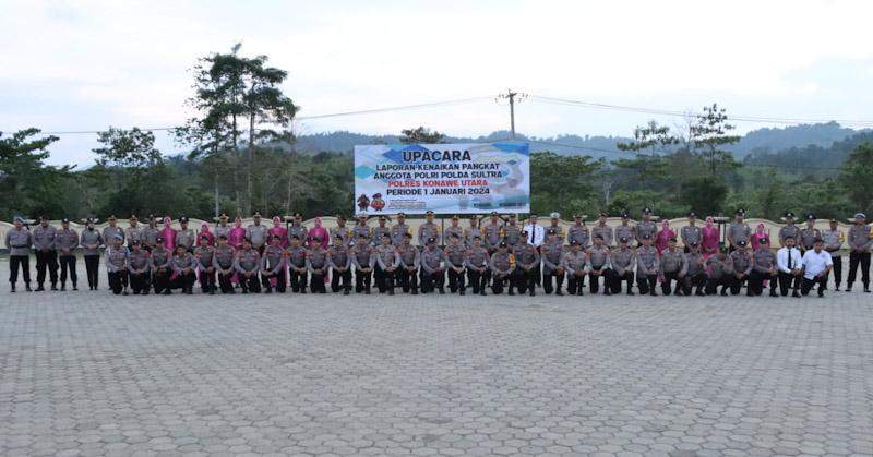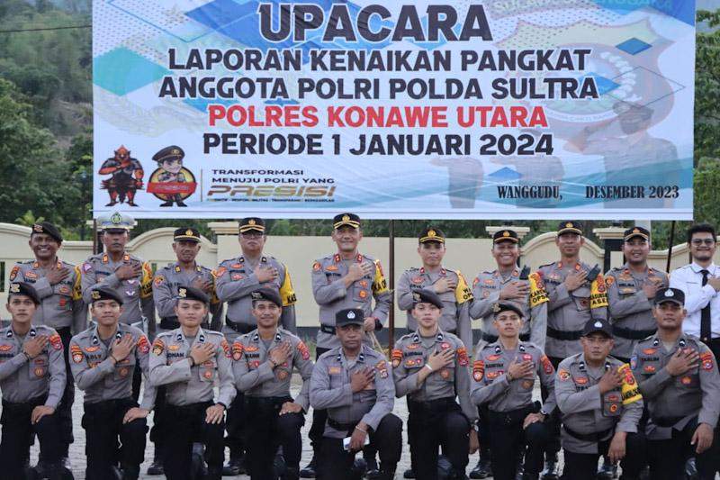 Upacara kenaikan pangkat dihadiri wakapolres Kompol Urva Lomansyah, S.Si., S.I.K., M.H para pejabat utama serta personel Polres Konawe utara
