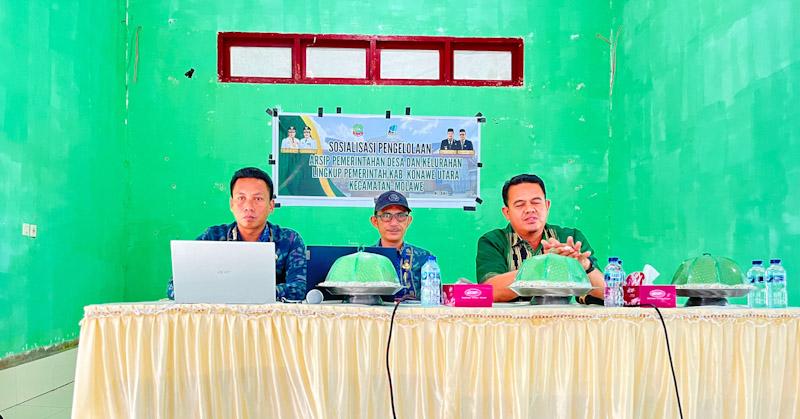 Indosultra.Com, Konawe Utara– Pemerintah Kabupaten (Pemkab), Konawe Utara (Konut), Sulawesi Tenggara (Sultra), melalui Dinas Perpustakaan dan Kearsipan Konut sukses menggelar sosialisasi Arsip Pemerintahan Desa Dan Kelurahan.