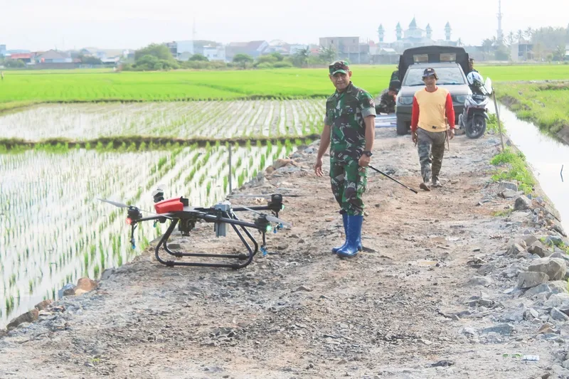“Pertanian modern memiliki sistem pertanian yang lebih maju dari pertanian tradisional baik, dari segi teknologi hingga pengendalian hama. Pertanian modern biasanya memakai teknologi canggih yang berguna untuk menjaga kelestarian ekosistem dalam jangka panjang. Hari ini kami peraktekkan menyemprotan hama wereng dengan mempergunakan tekhnology Drone”, jelas Dandim.