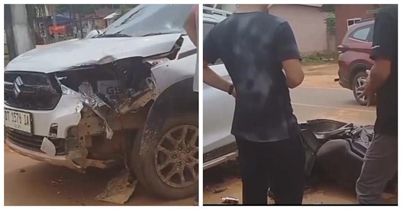 Insiden ini melibatkan sepeda motor Yamaha Aerox berpelat merah DT 5310 B yang dikendarai oleh YG dan mobil Suzuki XL7 berwarna silver dengan nomor polisi DT 1576 IA yang dikemudikan oleh YR.