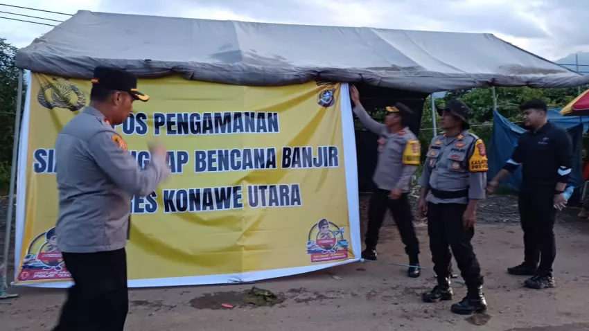 Indosultra.Com, Konawe Utara – Kepala Kepala Kepolisian Resor (Kapolres) Konawe Utara (Konut), AKBP Rico Fernanda mendirikan tenda polri di lokasi banjir, antrian pengendara di jalan trans sulawesi Sambandete, Kecamatan Oheo, Kabupaten Konut.