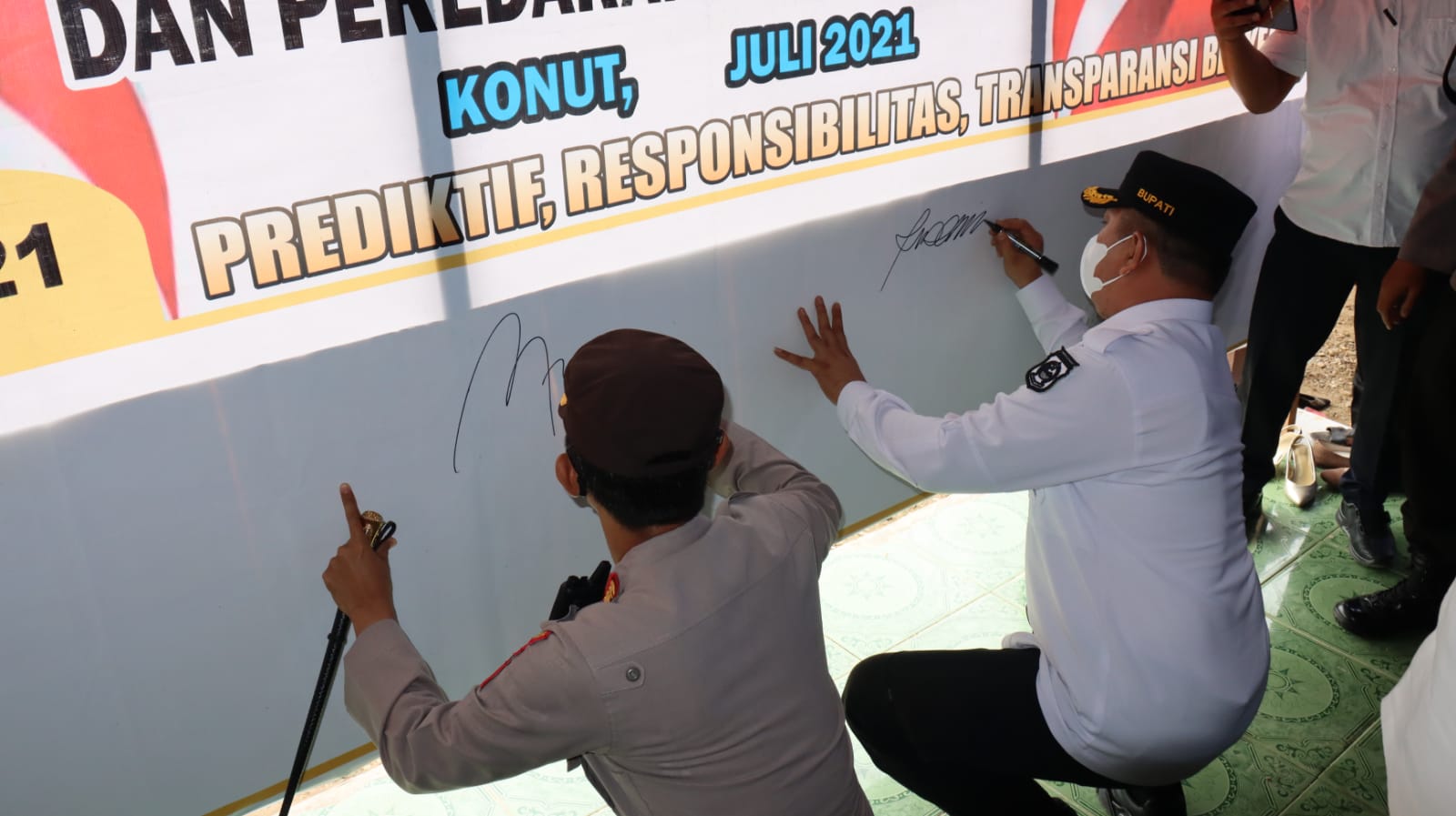 Launching kampung tangguh narkoba dihadiri langsung, Wakil Bupati Konut, Abuhera, Sekda Konut, Kasim Pagala, dan disaksikan Kepala BNN Kota Kendari, Kepala Kabinda Tingkat ll Sultra, Selanjutnya, dilakukan penandatanganan komitmen bersama masyarakat, yang dimulai Bupati Konut, Wakil Bupati, Kapolres, dan Sekda.**(IS).