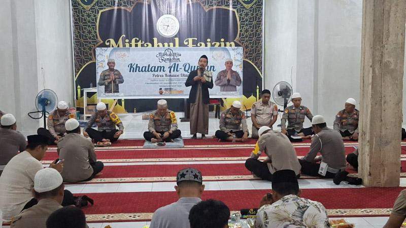 Indosultra.com, Konawe Utara Kepala Kepolisian Resor (Polres) Konawe Utara (Konut) AKBP Priyo Utomo SH.S.I.K memimpin acara Khatam Qur’an yang digelar di Masjid Miftahul Faidzin Polres Konawe Utara Kelurahan Wanggudu, Kecamatan Asera, selasa (26/3/24) sekira pukul 21.00 wita.