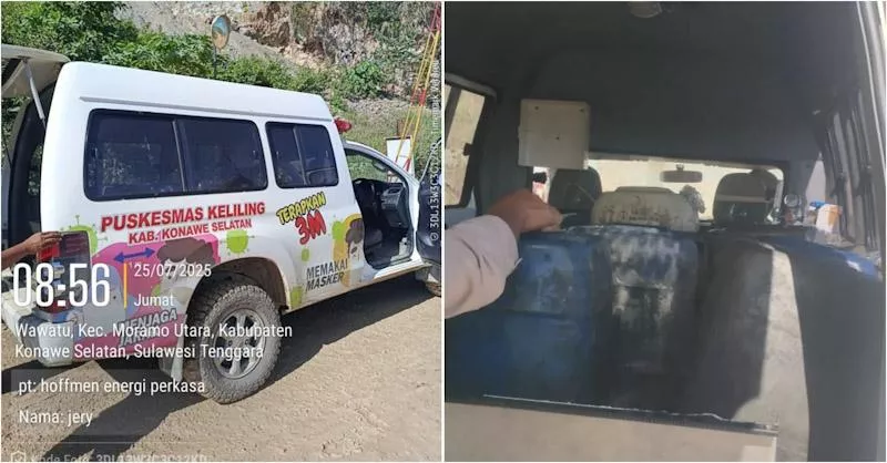 Indosultra.com, Konsel – Mobil ambulans milik Puskesmas Keliling Pemerintah Kabupaten (Pemkab) Konawe Selatan terciduk membawa bahan bakar minyak (BBM) jenis solar ke area jetty pertambangan. Ironisnya, sopir ambulans berpelat merah DT 9004 H itu justru kabur saat akan diperiksa oleh petugas keamanan perusahaan.