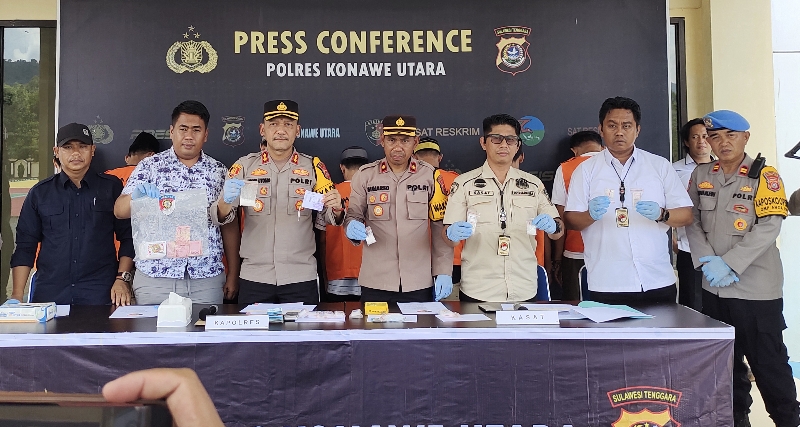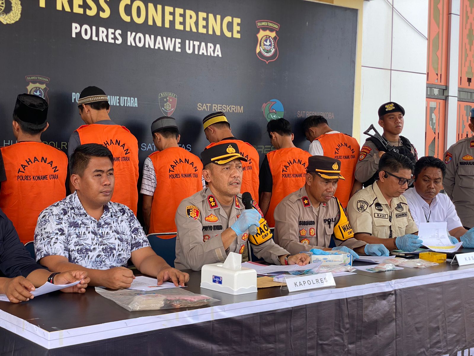 Hasil penangkapan disampaikan secara terbuka mulai dari pelakunya hingga barang bukti oleh Kapolres Konut, AKBP Priyo Utomo melalui press release yang berlangsung di Mako Polres Konut, Sabtu 23 November 2024.