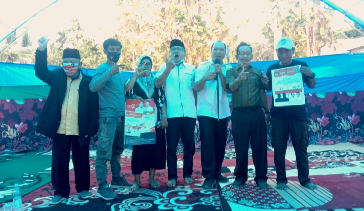 Ketgam:Paslon Ruksamin-Abu Haera berasama Ketua Tim Kampanye Rabu, Sudiro saat menggelar kampanye terbatas di Desa Kapulano, Sama Subur, dan Tondowatu.(Foto:Indosultra.Com).