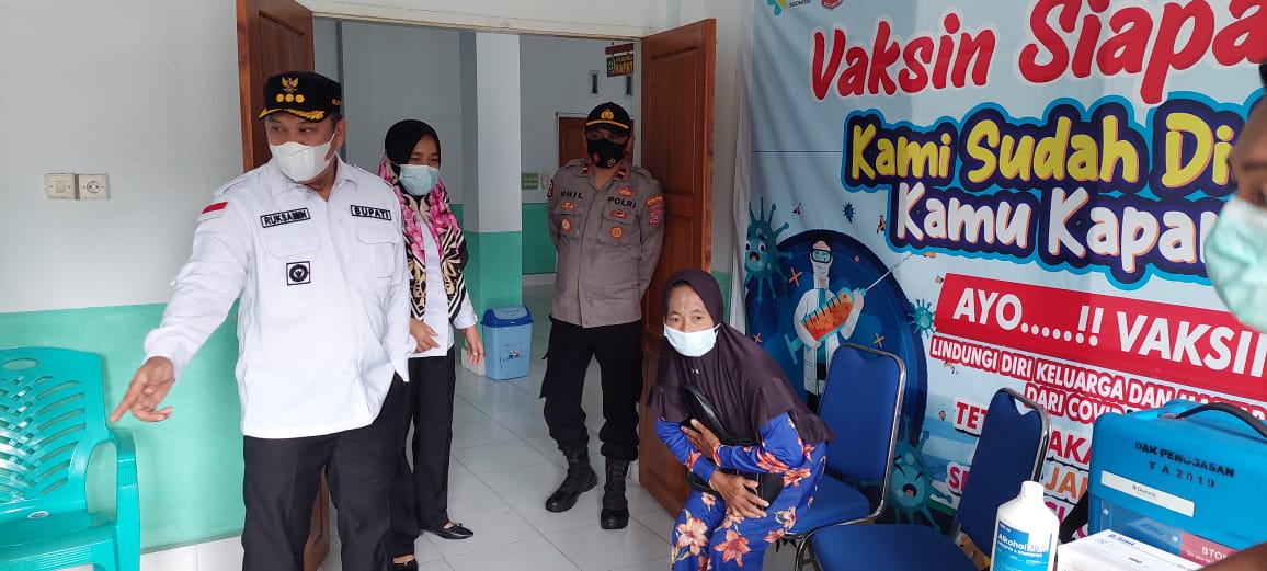 Ketgam: Bupati Konut bersama Kapolres Konut, Turun Minjau Pelaksanaan Vaksinasi Dipuskemas.(Indosultra.Com)