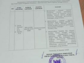 Ketgam: Surat Pemberitahuan Status Laporan yang ditandatangani Ketua Bawaslu Koltim, Rusniyati Nur Rakibe (Foto: Istimewa). Indosultra.Com, Kolaka Timur-Surat pemberitahuan status ...