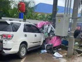 Indosultra.com,Kendari – Sebuah mobil merek fortuner warna putih dengan nomor polisi DT 1273 QE menabrak gerobak tukang bubur warna pink, ...