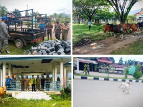 Ketgam: Jajaran Dinas Pertanian dan Peternakan bersama Satpol PP Konut, Asisten lll saat mengamankan puluhan ekor hewan ternak yang berkeliaran ...