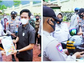 Ketgam: Ketua DPRD Konut, Ikbar bersama Plt Sekda Konut, Kasim Pagala saat mengikuti proses launching Perpustakaan Keliling Polisi Sahabat Anak ...