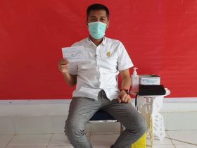 Ketgam: Anggota DPRD Konut, Abdul Malik mewakili Ketua DPRD Konut saat melakukan vaksin covid-19 tahap ll di RSUD Konut. (Indosultra.Com). ...