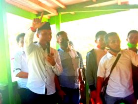 Ketgam: Tokoh Masyarkat Desa Pondoa, Yunus saat menyampaikan orasi politiknya dalam acara kampanye terbatas paslon Ruksamin-Abu Haera. Indosultra.Com, Konawe Utara-Kampanye ...