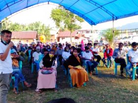 Ketagam: Tokoh Masyarakat Desa Taipa, Burhan saat memberikan orasi politiknya diacara kampanye terbatas paslon Bupati dan Wakil Bupati Konut, Ruksamin-Abu ...
