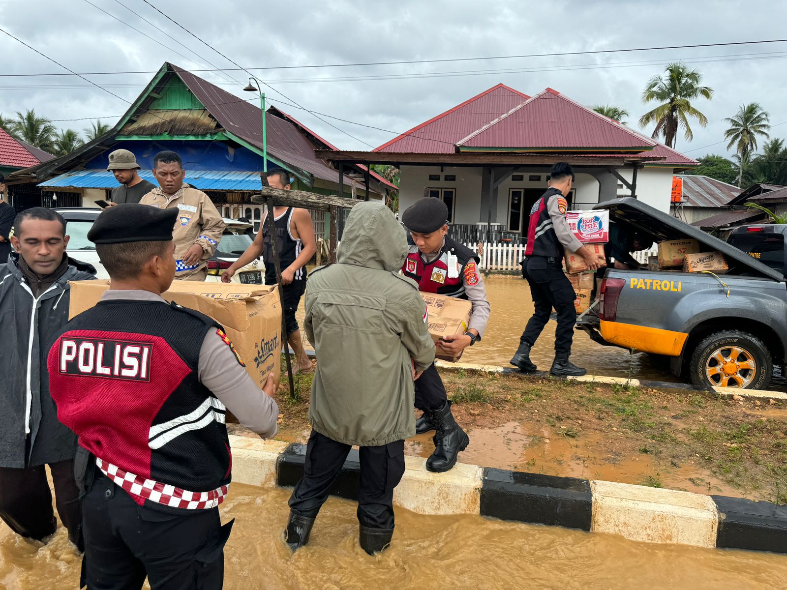 Indosultra.Com, Konawe Utara- Banjir yang terjadi diwilayah Kecamatan Andowia, Kabupaten Konawe Utara (Konut), Sulawesi Tenggara (Sultra), juga menjadi perhatian serius dari satuan Kepolisian Resort (Polres) Konut.