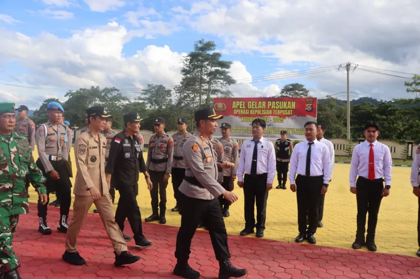 Pada apel gelar pasukan Kapolres Konut bersama Bupati, Wakil Bupati dan Kasdim 1430 Konut mengecek pasukan pengamanan dan sarana prasarana serta memasang pita operasi sebagai tanda dimulainya operasi kepolisian terpusat Ketupat Anoa 2025.