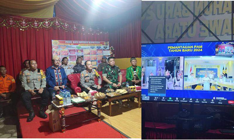Untuk di Konawe Utara, di hadiri Bupati Konut, Ruksamin diwakili Sekertaris Daerah (Sekda) Konut, Safruddin, Assisten lll Setda konut, La Ondjo dan pihak Kodim 1430 Konut, para PJU Polres Konut. Rapat Virtual Polres Konut berlangsung di Pos Pengamanan Asera, Minggu (31/12/2023).