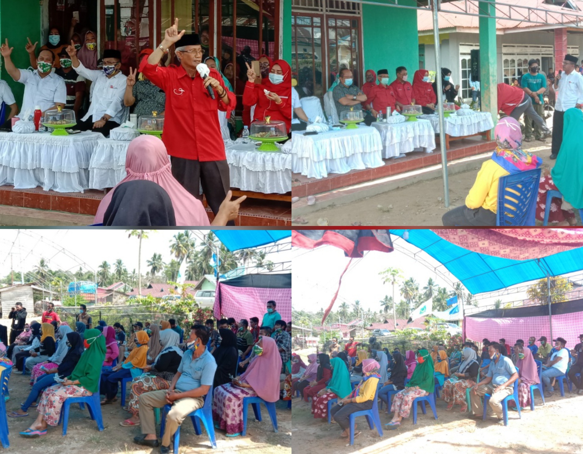 Ketgam:Ketua DPD l PDIP Sultra, Lukman Abunawas saat menyampaikan orasi politiknya diacara kampanye terbatas paslon Bupati dan Wakil Bupati Konut, Rusamin-Abu Haera di Desa Waworaha.