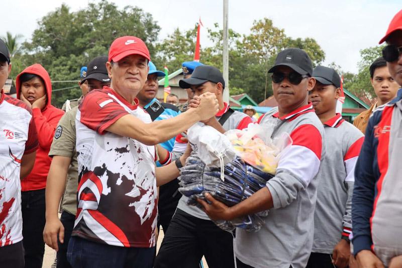 Sebelum meninggalkan lokasi kegiatan, H.Abuhaera yang didampingi Sekda Konut serta para kepala OPD dan Forkopimda, secara sistematis melakukan penyaluran bantuan Kostum dan alat olah raga masing-masing dua set kepada desa dan lurah Se-Kecamatan Motui.