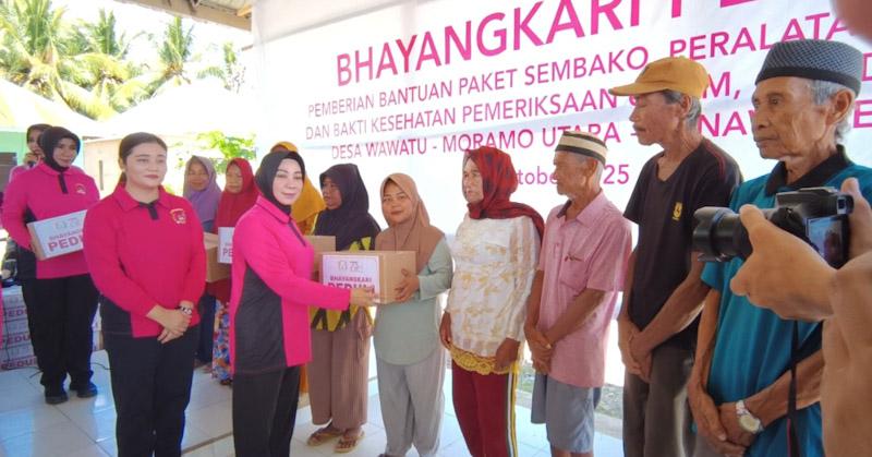 ‎Bhayangkari Sultra Tebar Kepedulian di Desa Wawatu: Bantu Sembako, Sekolah, dan Nelayan
