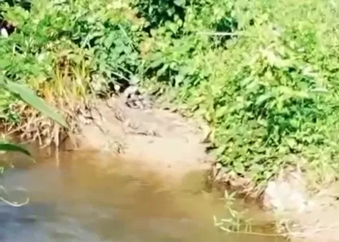 Dalam video yang diterima redaksi Indosultra.com, tampak jelas reptil predator itu sedang berjemur dengan tenang di tepi sungai, tanpa merasa terganggu oleh aktivitas warga sekitar.
