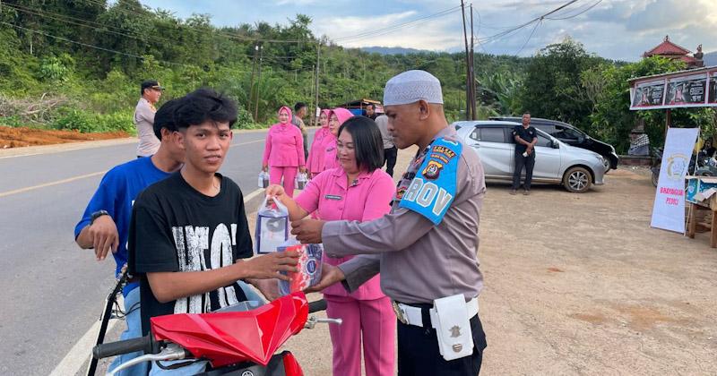 Kepolsek Wiwirano Ipda German Sero Saputra Rante, S.H didampingi Kapolsubsektor Langgikima Ipda Rusli Jaya, S.H bersama personel dan Bhayangkari ranting wiwrano turun langsung kejalan berbagi takjil ramadhan