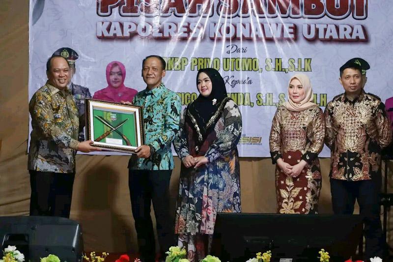 Dalam kesempatan tersebut, Bupati Konut Ruksamin menyampaikan terimakasih dan apresiasi kepada AKBP Priyo Utomo atas dedikasi dan kerja kerasnya selama menjabat Kapolres Konut.