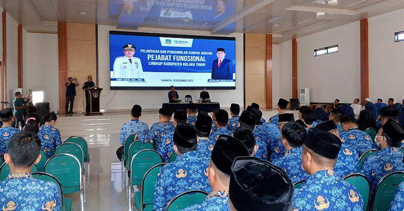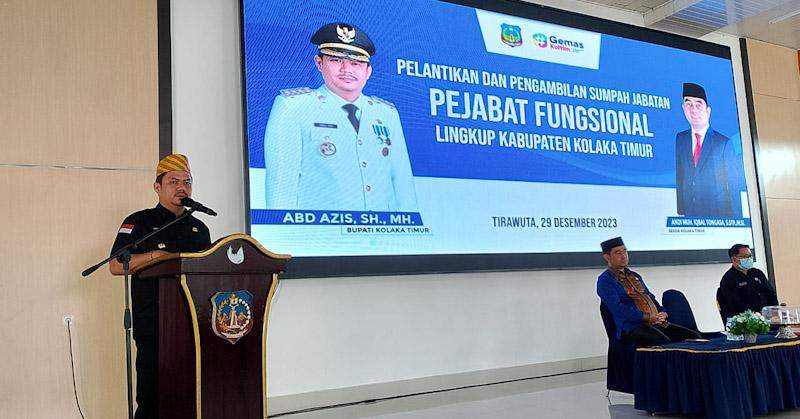 Indosultra.Com, Koltim- Matabondu- Bupati Kolaka Timur, Abd Azis SH MH, memimpin prosesi pelantikan serta pengambilan sumpah jabatan bagi Pejabat Fungsional di lingkup Pemerintah Daerah Koltim. Acara solennya digelar pada Jumat (29/12/2023) di Aula Rujab Bupati Koltim.