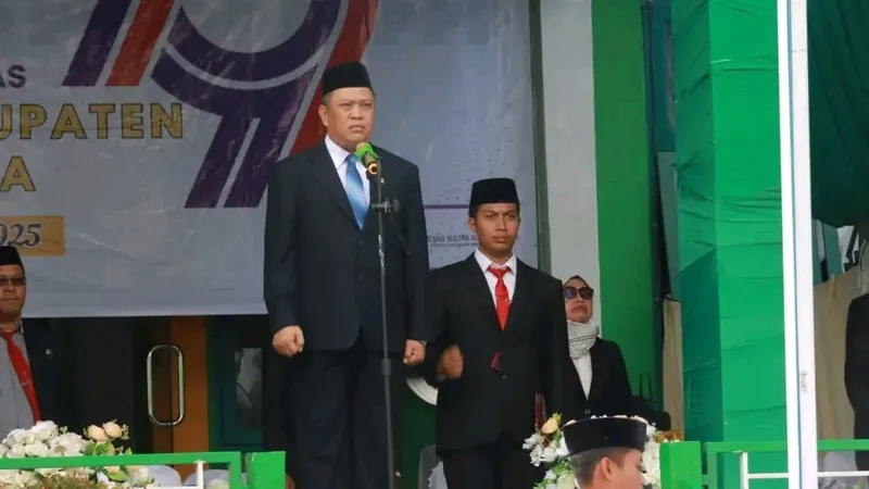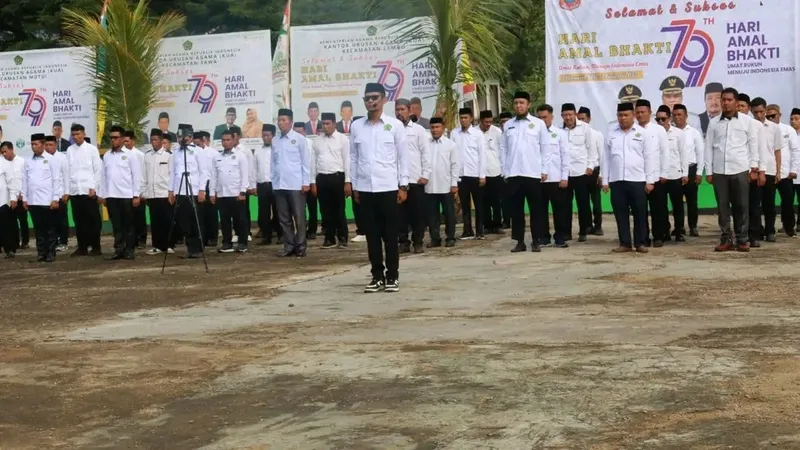 Dalam upacara tersebut, Bupati H. Ruksamin membacakan sambutan tertulis Menteri Agama RI, Prof. Dr. K.H. Nasaruddin Umar, MA. Beliau menegaskan bahwa peringatan HAB ke-79 ini menjadi momentum penting dalam mendukung Asta Cita Pemerintahan Prabowo-Gibran.