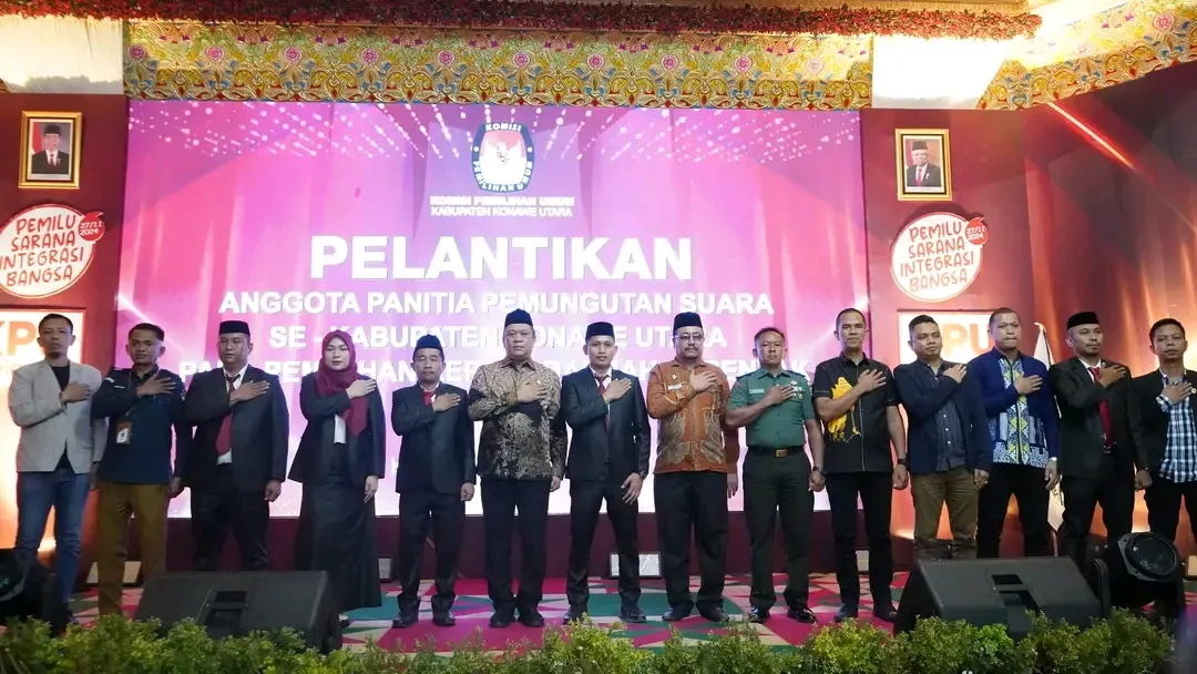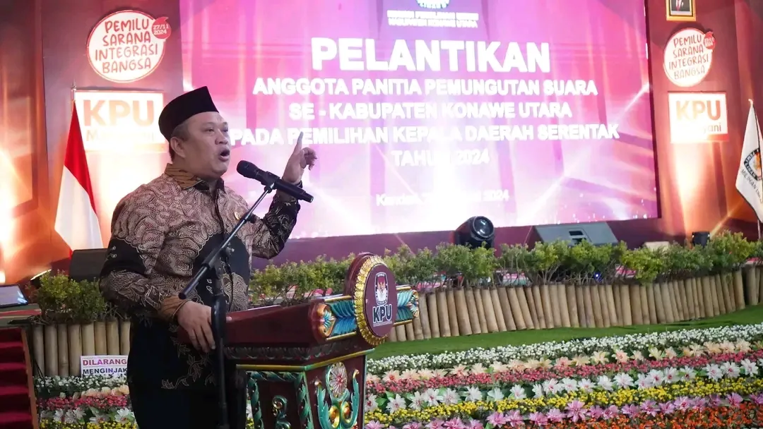 Indosultra.Com, Konawe Utara – Bupati Konawe Utara (Konut), Ruksamin hadiri pelantikan Anggota Panitia Pemungutan Suara (PPS) se- Kabupaten Konut untuk pemilihan Kepala Daerah Serentak Tahun 2024.