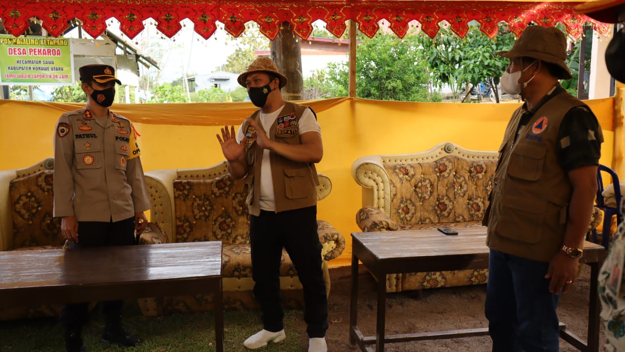 Indosultra.Com, Konawe Utara-Bupati Konawe Utara (Konut), Sulawesi Tenggara (Sultra), Ruksamin bersama Kapolres Konut, AKBP Achmad Fathul Ullum, Perwira Penghubung TNI Kodim 1417/Kendari, dan Sekda Konut, Kasim Pagala turun langsung memeriksa fasilitas kelengakapan pengamanan di pos-pos penjagaan.