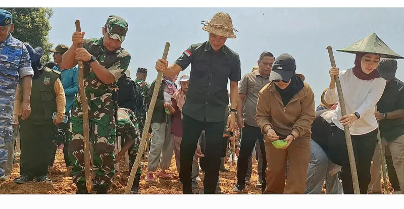 Bupati Konut, Ikbar bersama Wakilnya Abu, Haera ketua PKK Konut, Wisra Wastawati Ikbar, Kodim 1430 Konut, Polres Konut, Pemerintah Kecamatan, Kelurahan dan Desa turun langsung melakukan penanaman bahan kebutuhan makan tersebut bersama para masyarakat petani.