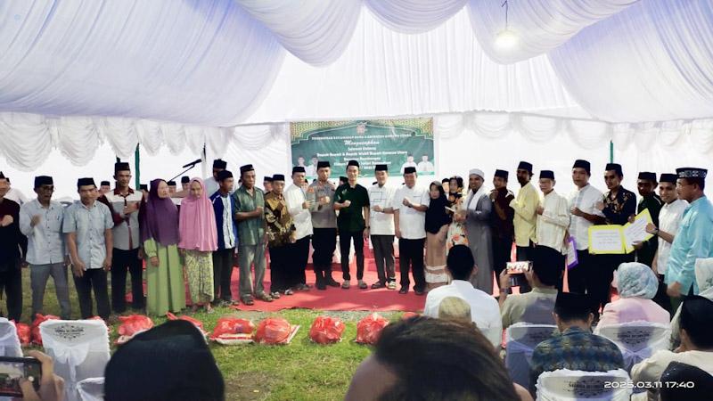Ditempat itu juga dilakukan penyerahan bantuan dana hibah ratusan juta untuk pembangunan sarana ibadah masyarakat, serta penyerahan bantuan ratusan paket sembako yang diperuntukkan bagi masyarakat.