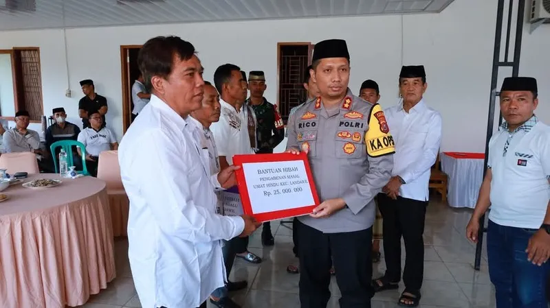Ditempat itu juga dilakukan penyerahan bantuan dana hibah ratusan juta untuk pembangunan rumah ibadah dan ratusan paket sembako untuk masyarakat.***