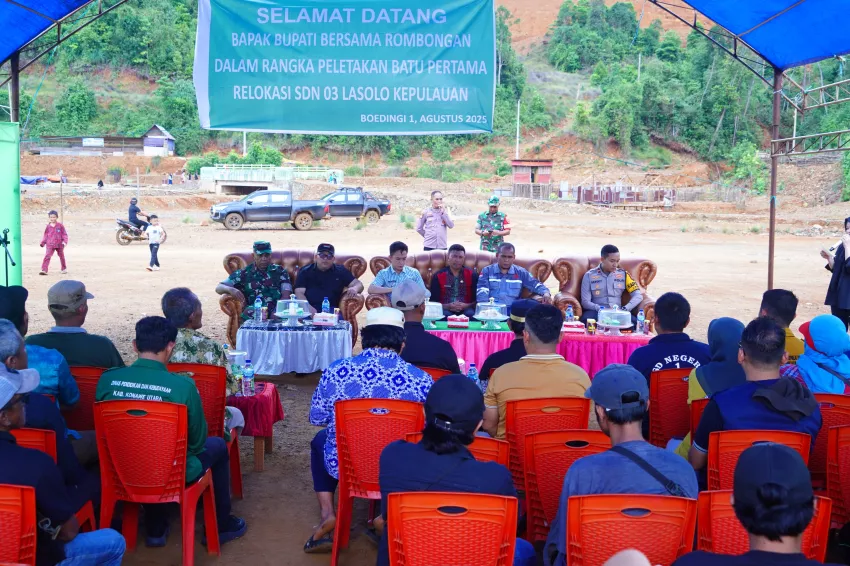 Indosultra.Com, Konawe Utara -Bupati Konawe Utara (Konut), Ikbar, SH.,MM resmi melakukan peletakan batu pertama pembangunan SDN 3 Lasolo Kepulauan (Laskep) pada Jumat, 1 Juli 2025 yang bertempat di Desa Boedingi, Kecamatan Lasolo Kepulauan (Laskep), serta menyalurkan bantuan seragam sekolah untuk para siswa.