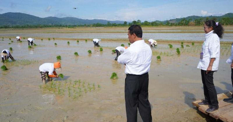 Dalam rangkaian kegiatan tersebut, Bupati Ruksamin terlibat langsung mulai dari penanaman padi hingga penyerahan bantuan kepada kelompok tani di Desa Waworado.