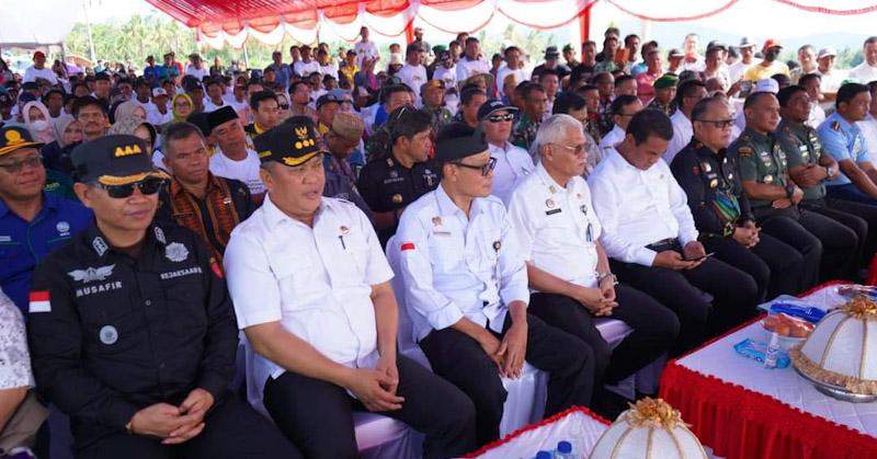 Bupati Konawe Utara, Ruksamin, turut mendamping Mentan RI, Andi Amran Sulaiman diacara itu bersama jajaran Forkopimda lainnya.