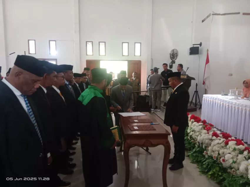 Indosultra.Com, Laworo – Bupati Muna Barat, La Ode Darwin resmi melantik dan mengambil sumpah 50 pejabat Administrator dan pengawas dilingkungan pemerintah Kabupaten Muna Barat di aula kantor Bupati Muna Barat, kamis(5/6/2025).