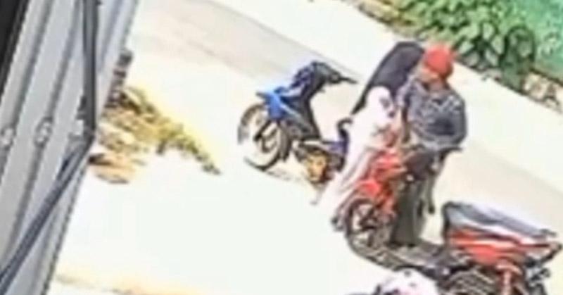 Dalam rekaman CCTV, keduanya terlihat berboncengan menggunakan sepeda motor dan berhenti di pinggir jalan. Sang wanita tetap duduk di atas motor, sementara pria turun dan berjalan mendekati salah satu warung. Namun, belum jauh melangkah, pria itu tiba-tiba berbalik arah dan menuju salah satu motor warga yang terparkir.