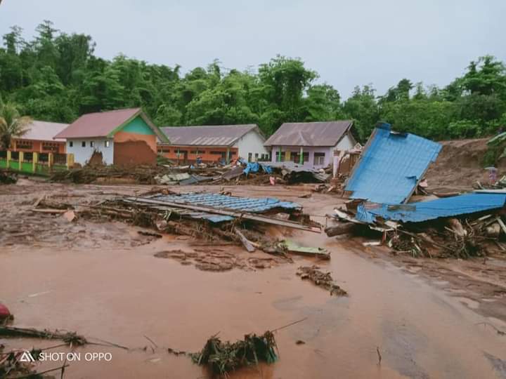 Akibat insiden itu rumah warga hancur rata tanah. Tak hanya itu, sarana pendidikan sekolah Daerah Tambang Desa Tapunggaya juga turut hancur akibat hantaman tanah longsor.