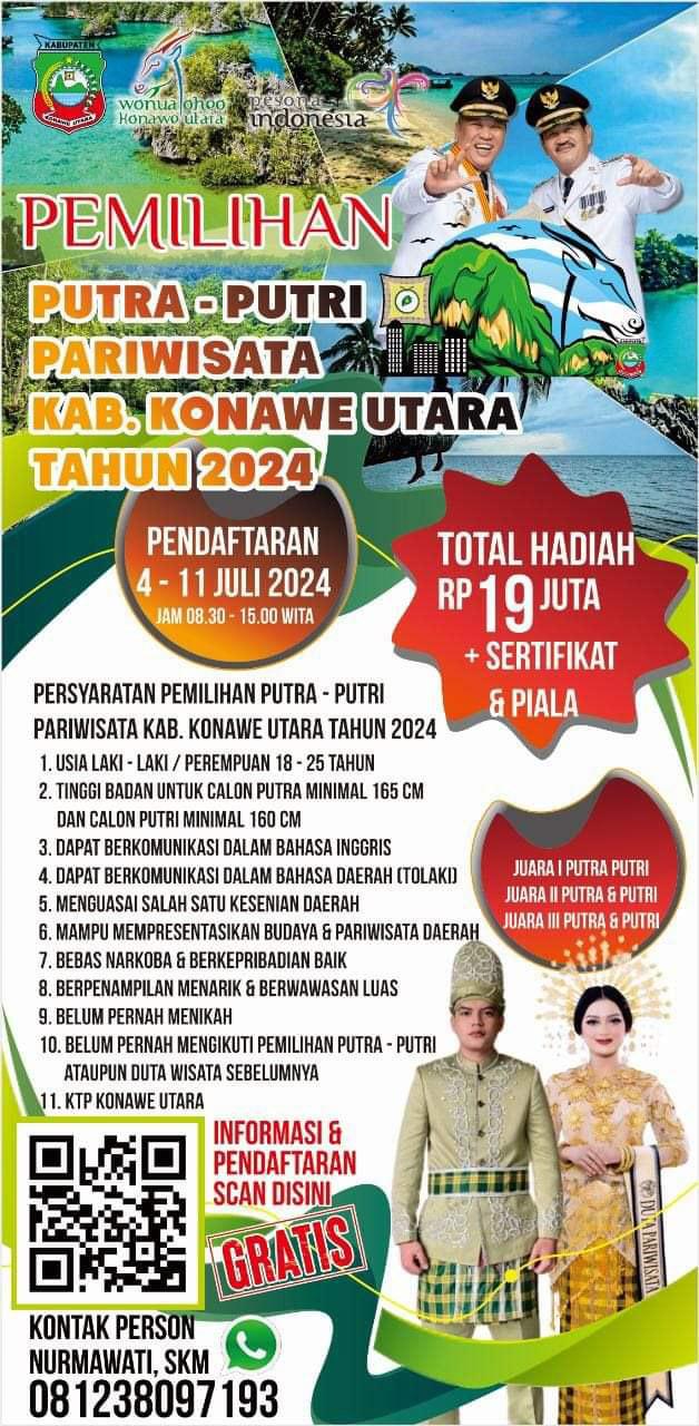 Daftar Segera, Pemilihan Putra-Putri Pariwisata Konut 2024, Pendaftaran Gratis Hadiah Puluhan Juta Rupiah 08:52 | 5 Juli 2024 54 Views