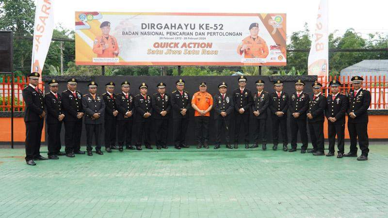 Bupati Konawe Utara (Konut), Sulawesi Tenggara (Sultra), Ruksamin yang hadir langsung dalam upacara HUT Basarnas ke 52 di Lapangan Upacara Basarnas Kendari, Rabu, 28 Februari 2024 turut mengambil barisan sebagai bentuk dukungan penuh terhadap kinerja Basarnas.