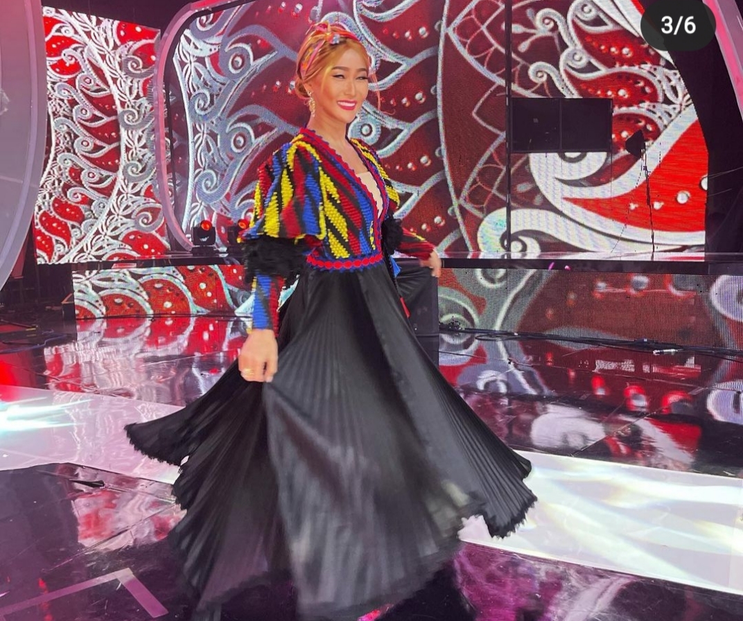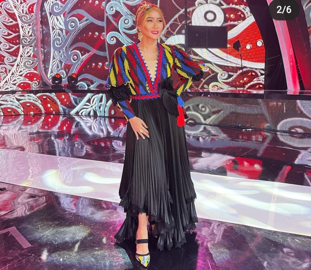 Ketgam: Inul Daratista saat pamerkan Kain Tenun Konasara asal Konawe Utara yang telah disain menjadi baju modern berkelas di acara LIDA Indosiar.