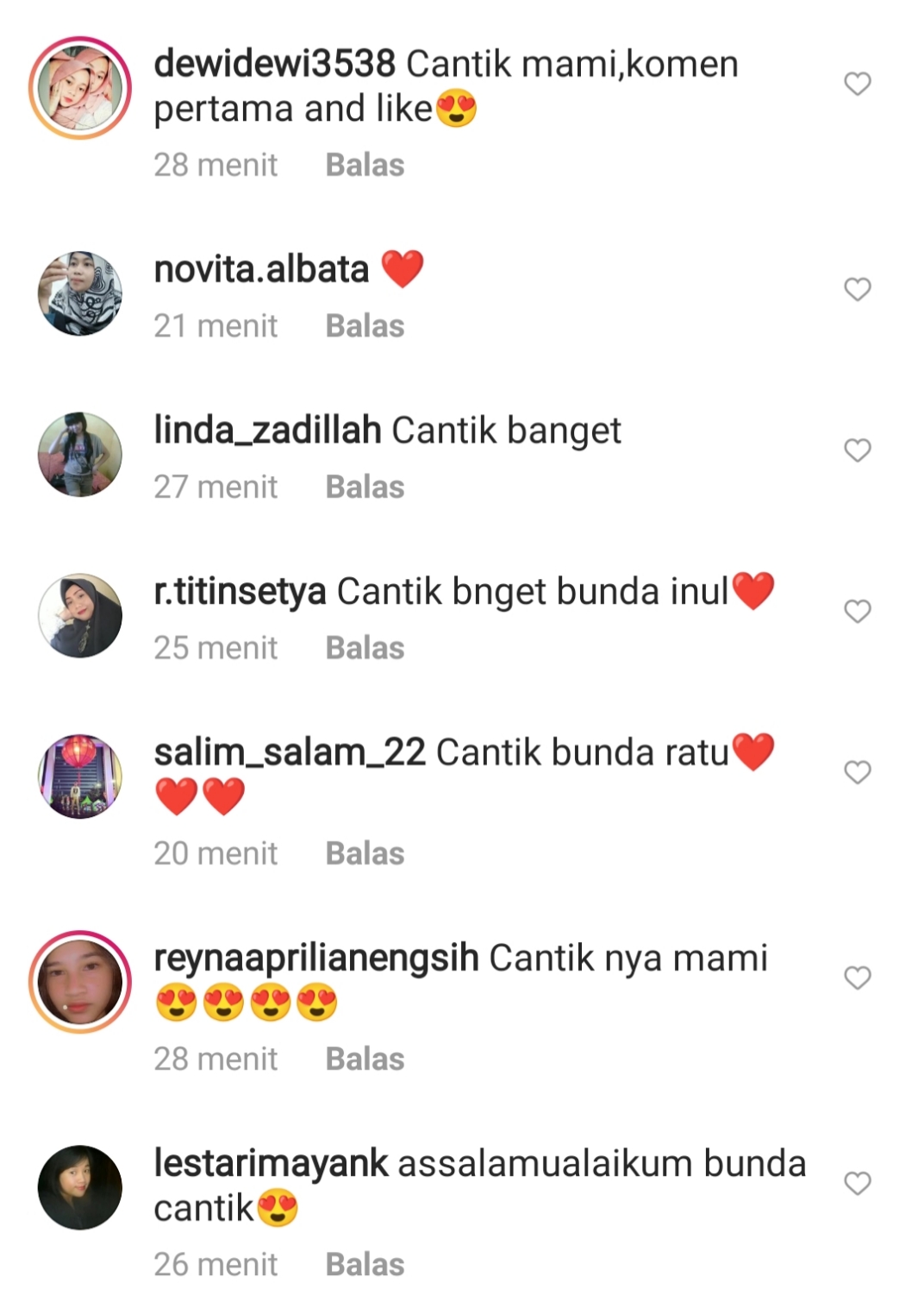 “Cantik banget,”tulis Linda Zadila dikolom komentar IG Inul Daratista.