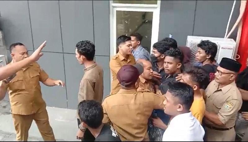 Dalam aksi demonstrasi tersebut sempat ricuh dikarenakan adanya gesekan antara pegawai DPRD Sultra dan massa aksi.
